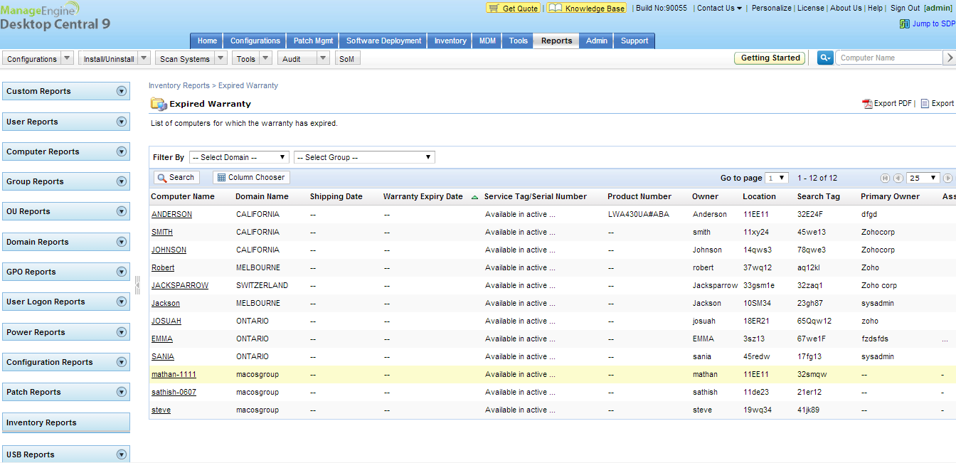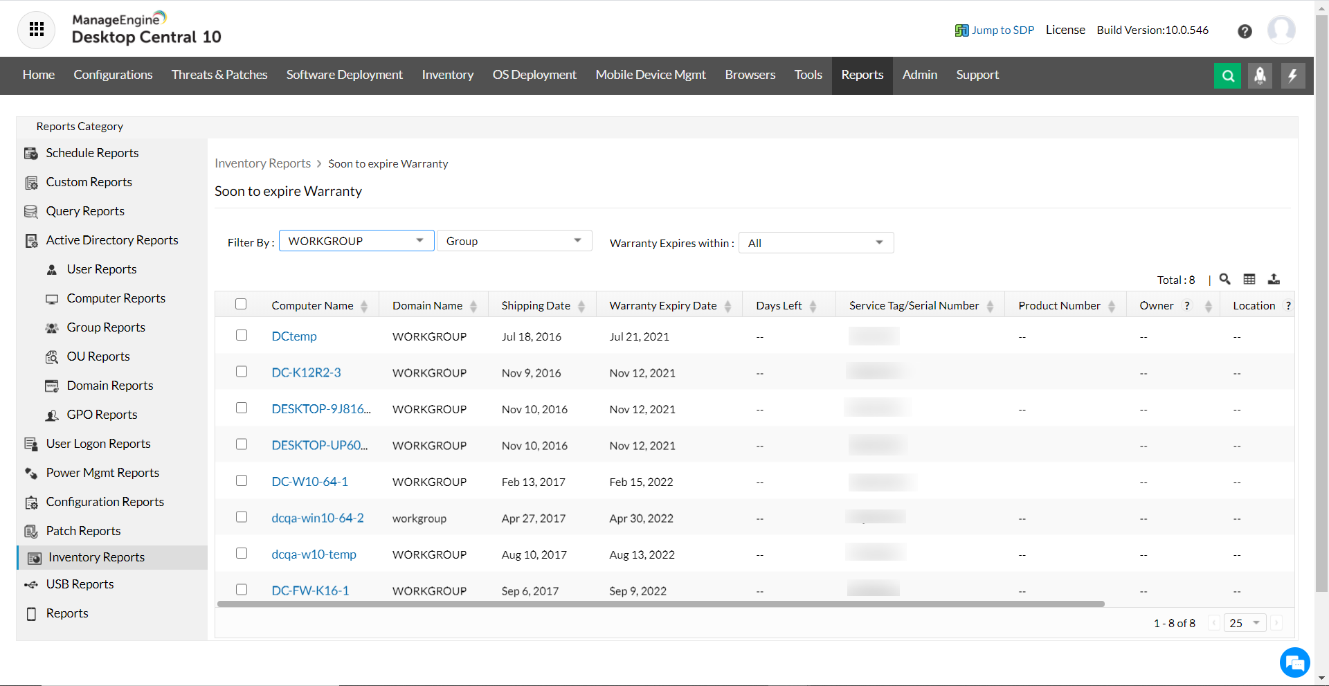 Desktop Central的保修管理功能为您提供了一组专用报表,例如: