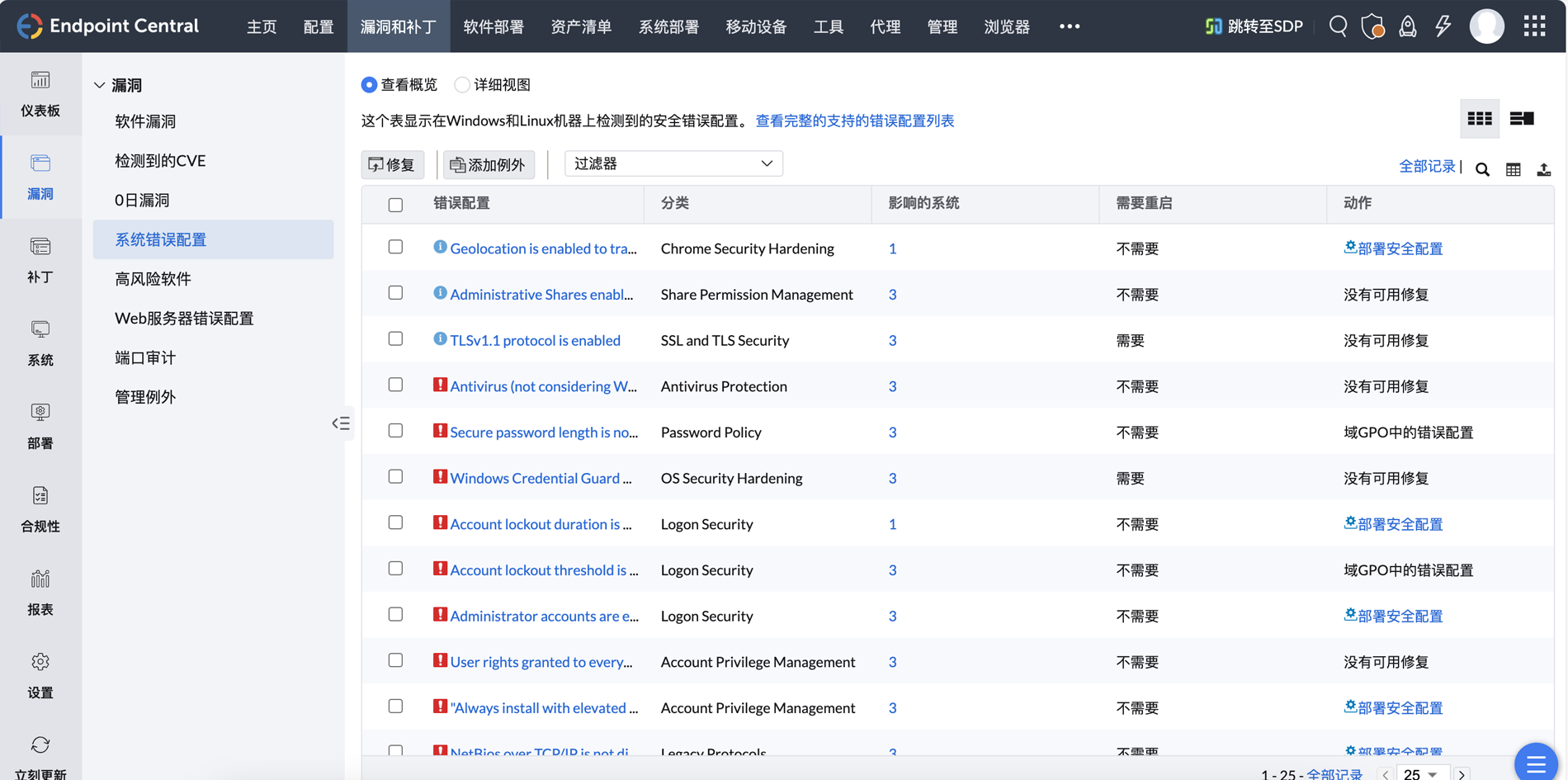 通过检测受管终端上的安全配置错误来加固您的网络。使用预定义的基于行业标准的安全配置基线库,该解决方案迅速持续地监视和识别网络中的任何配置错误,例如较弱的密码、防火墙审计、用户权限等方面。