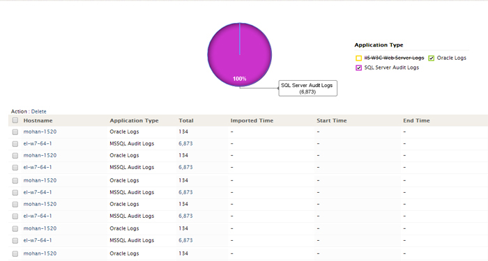Applications Dashboard – Intuitive graph and event count table provides instant information on database activities and helps you to drill down to raw logs.
