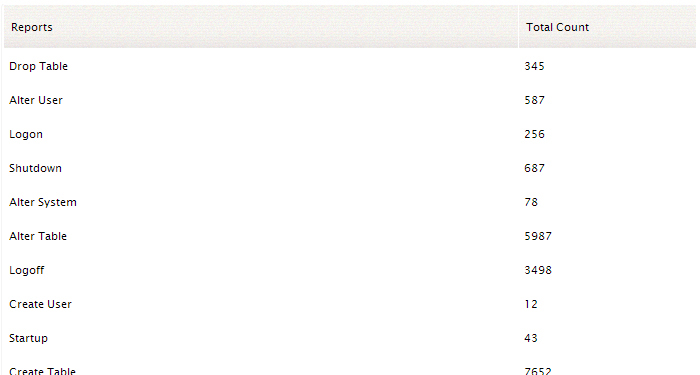 Out-of-the-box reports on oracle database activities that helps in easy editing. The report also has the capability to drill down to raw log level.