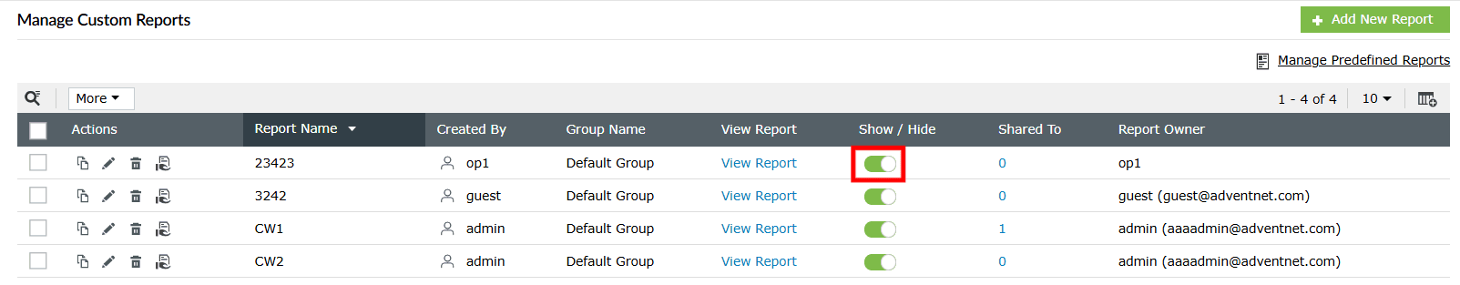 此视图有助于一目了然地监控大量报表。它将为您提供已添加到多报表中的报表的整体视图。在此视图中,每个报表都有一个查看报表按钮,可跳转到原始报表。