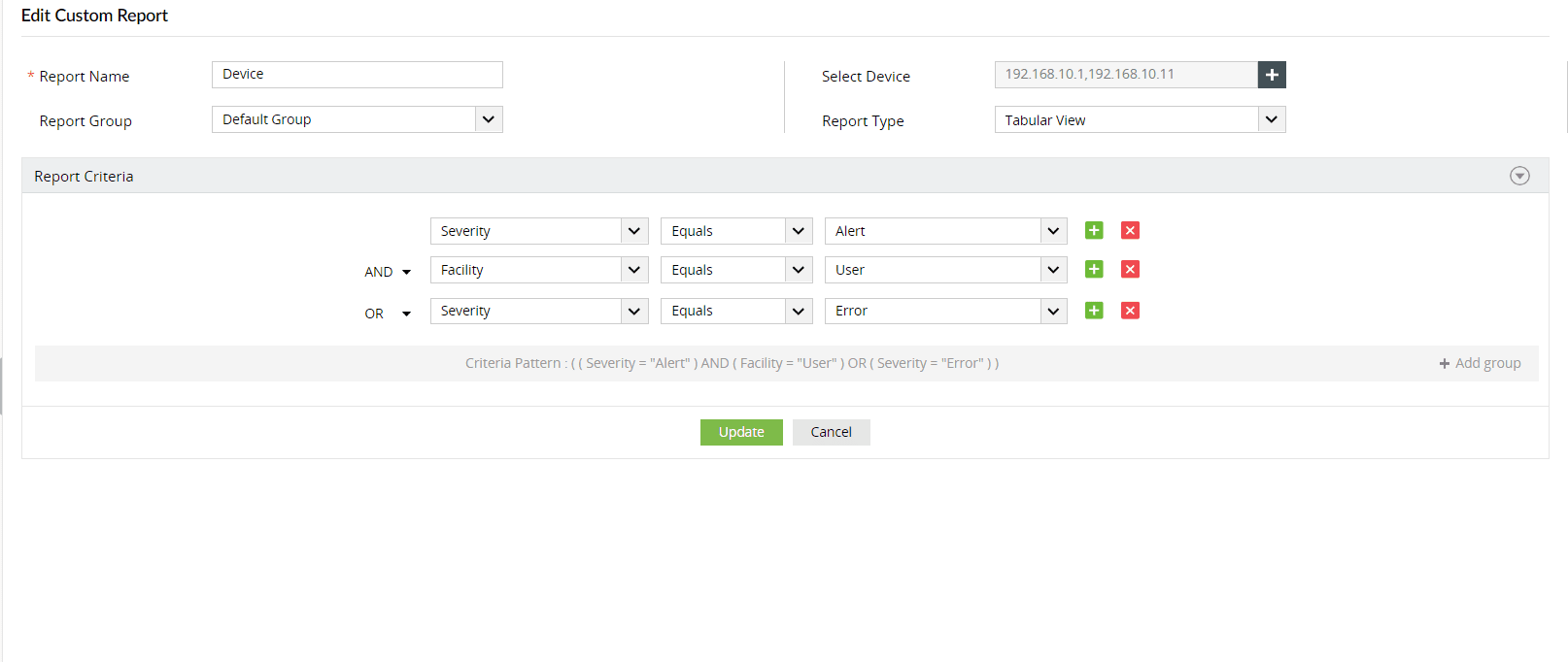 此视图为日志数据提供更细粒度的呈现。它允许您选择多个条件,据此显示数据。在设置报告条件后,您需要选择字段,用于生成汇总视图报告。