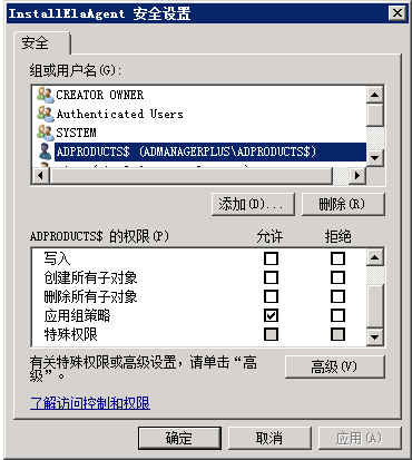 - 在安全面板中,将以下权限应用于选定的组和/或计算机: