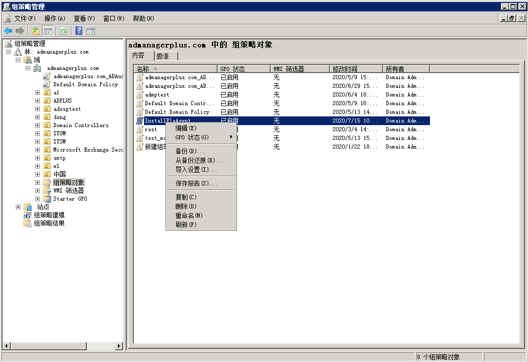 通过GPO安装代理: 步骤 1: 创建GPO 如下创建一个新的GPO(基于Windows Server版本): - 打开组策略管理。