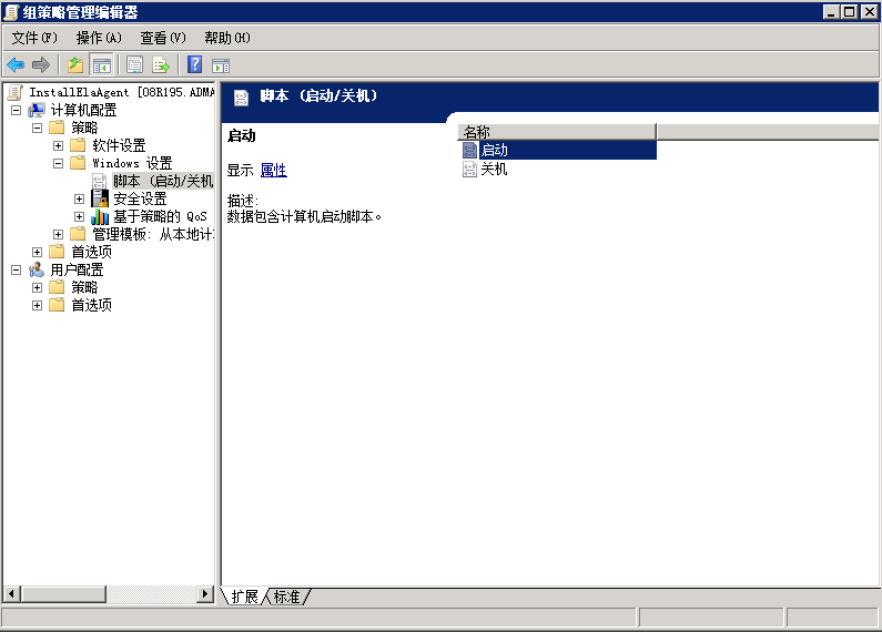 - 对于Windows Server 2003,在GPO编辑器的右窗格中,双击计算机配置,然后导航到Windows设置 → 脚本(启动/关闭) → 启动。