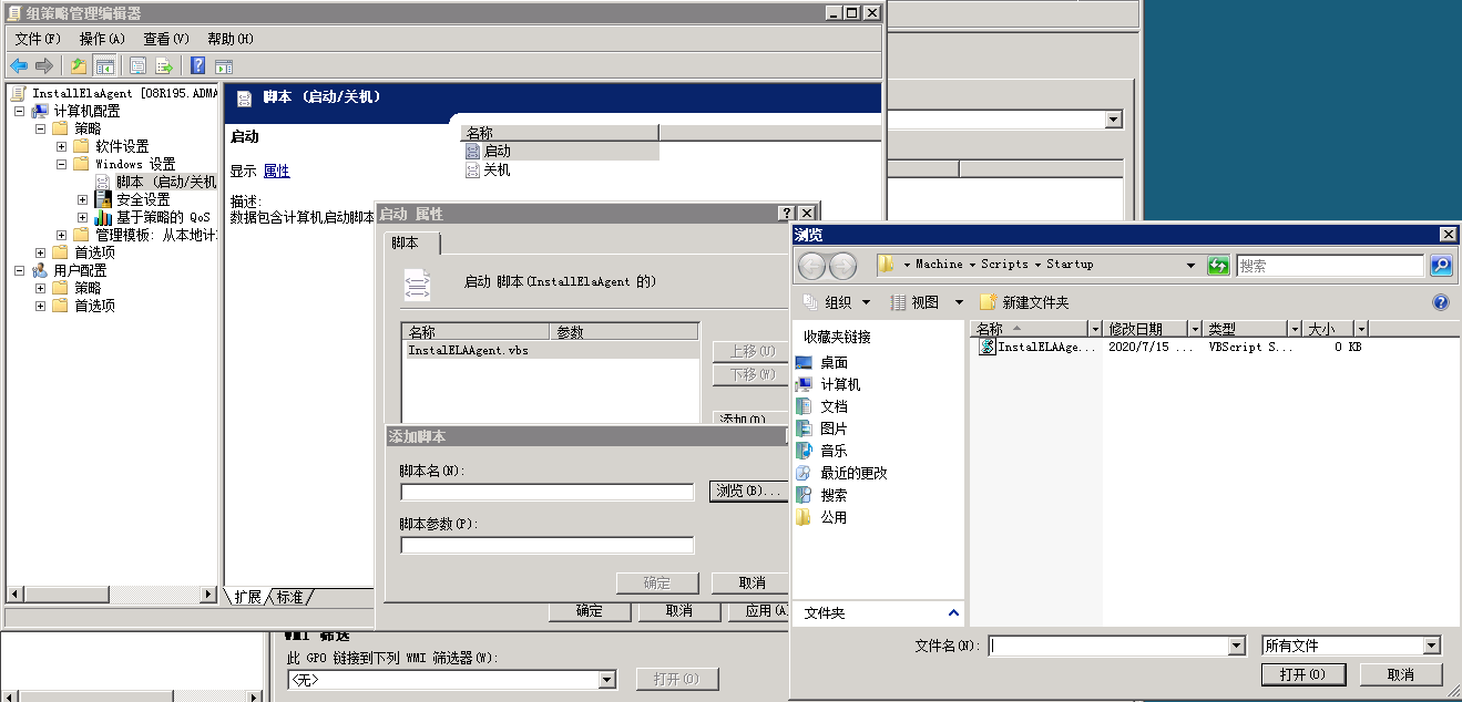 - 在“添加脚本”对话框中,点击浏览,然后从共享位置中选择InstallEventLogAgent.vbs。