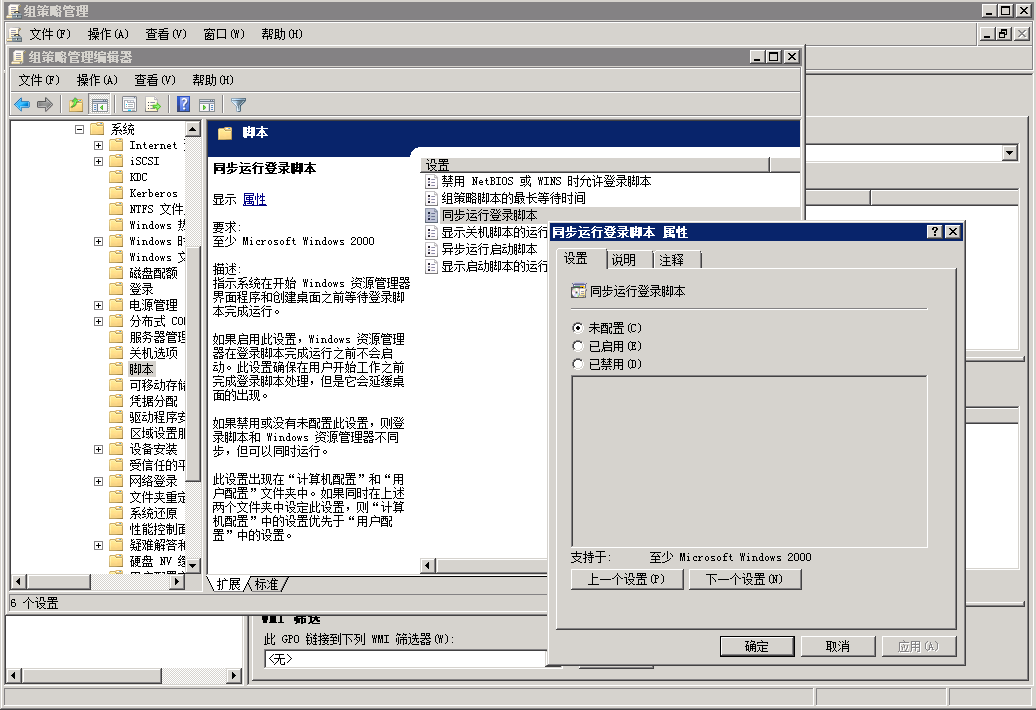 - 在GPO编辑器的右窗格中,双击同步运行登录脚本并启用它。