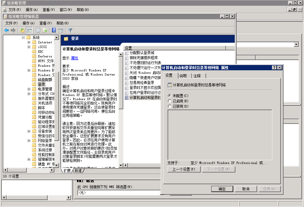 - 在右窗格中,双击始终在启动和登录时等待网络并启用它。