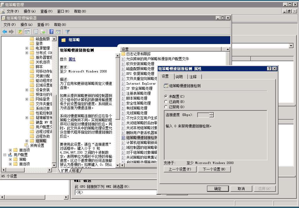 - 在右窗格中,双击组策略慢速链接检测并启用它。