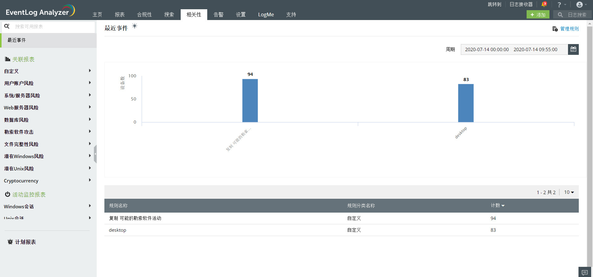 EventLog Analyzer相关报表, 您可以直观地了解网络设备发生的复杂事件,并且得到一个显示序列的清晰图像。适用三种类型的报表: