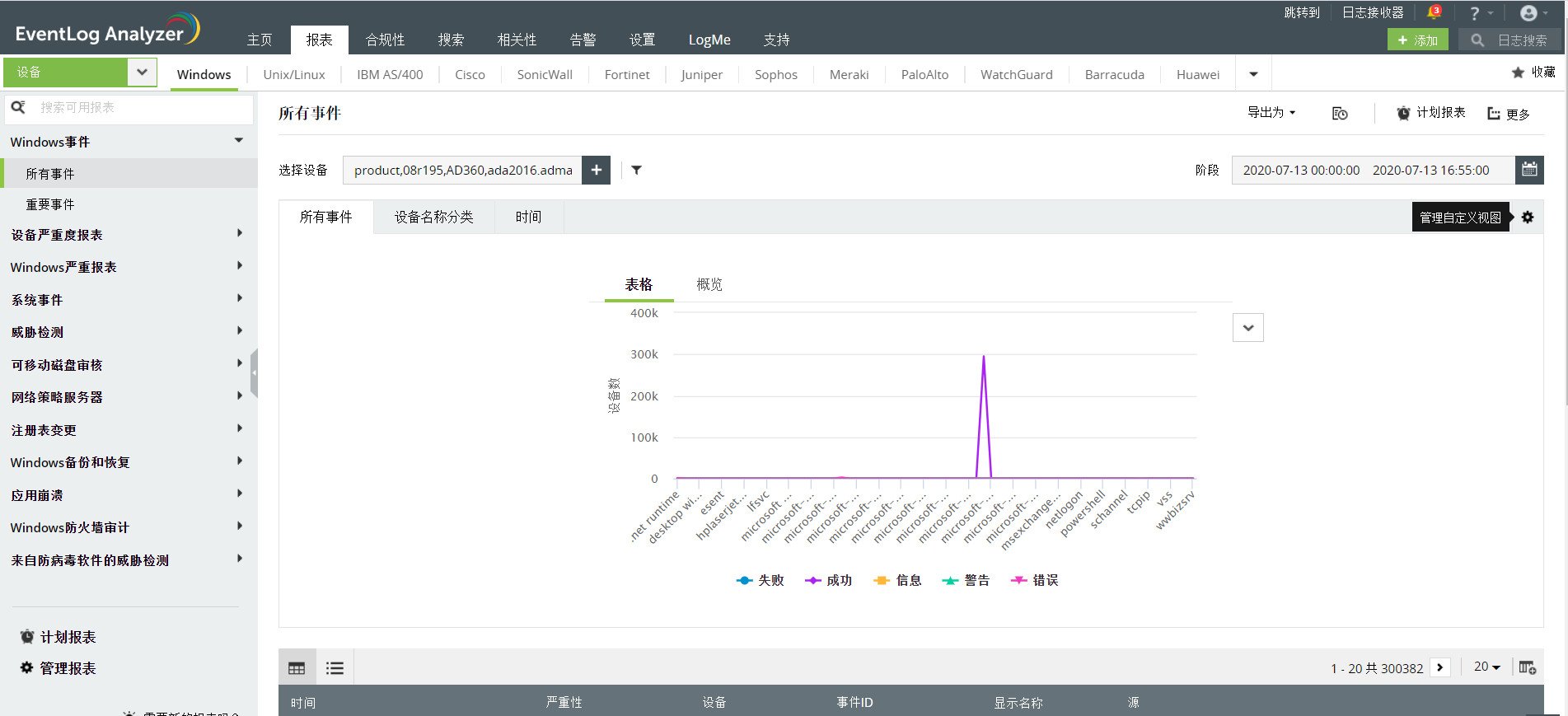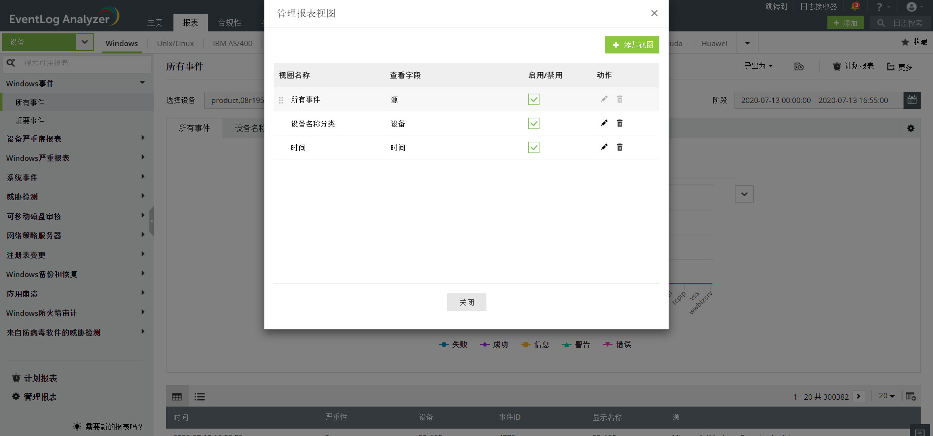 EventLog Analyzer使您能够创建同一表格视图报表的多个视图。所有视图都将从同一组日志数据中生成。由于所有预定义报表都在表格视图中,因此创建现有报表的其他视图会很有用。