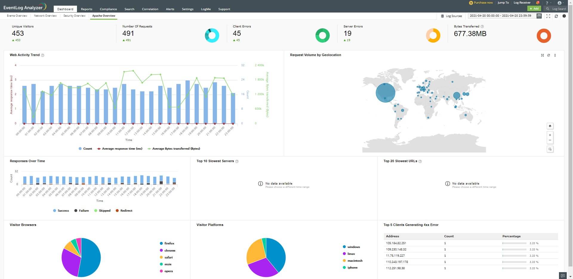 导入日志文件后,下面显示了更新后的Apache概览仪表板: