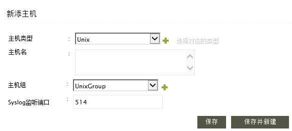 在添加主机页面中选择主机类型为UNIX,按照上面添加UNIX主机的步骤进行添加。