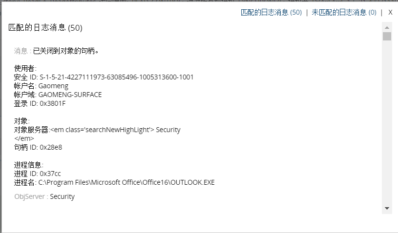 在上步中创建了字段后生成了规则模式。 验证链接用来在上次搜索结果中测试生成的正则表达式模式。通过“匹配的日志消息”和“未匹配的日志消息”来检查该正则表达式模式是否可用。