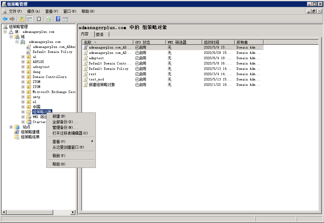 - 打开组策略管理。