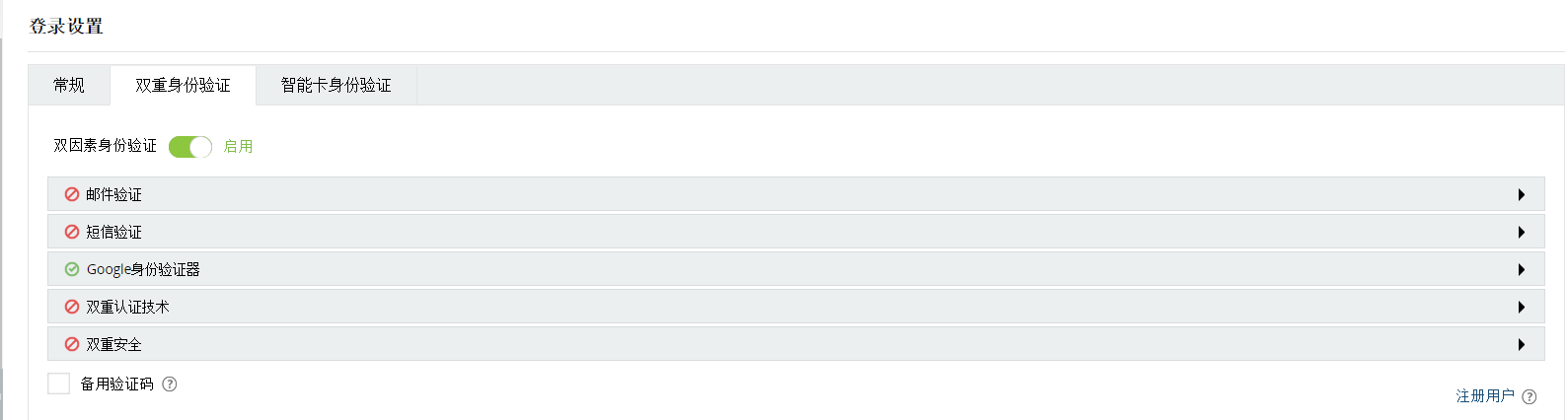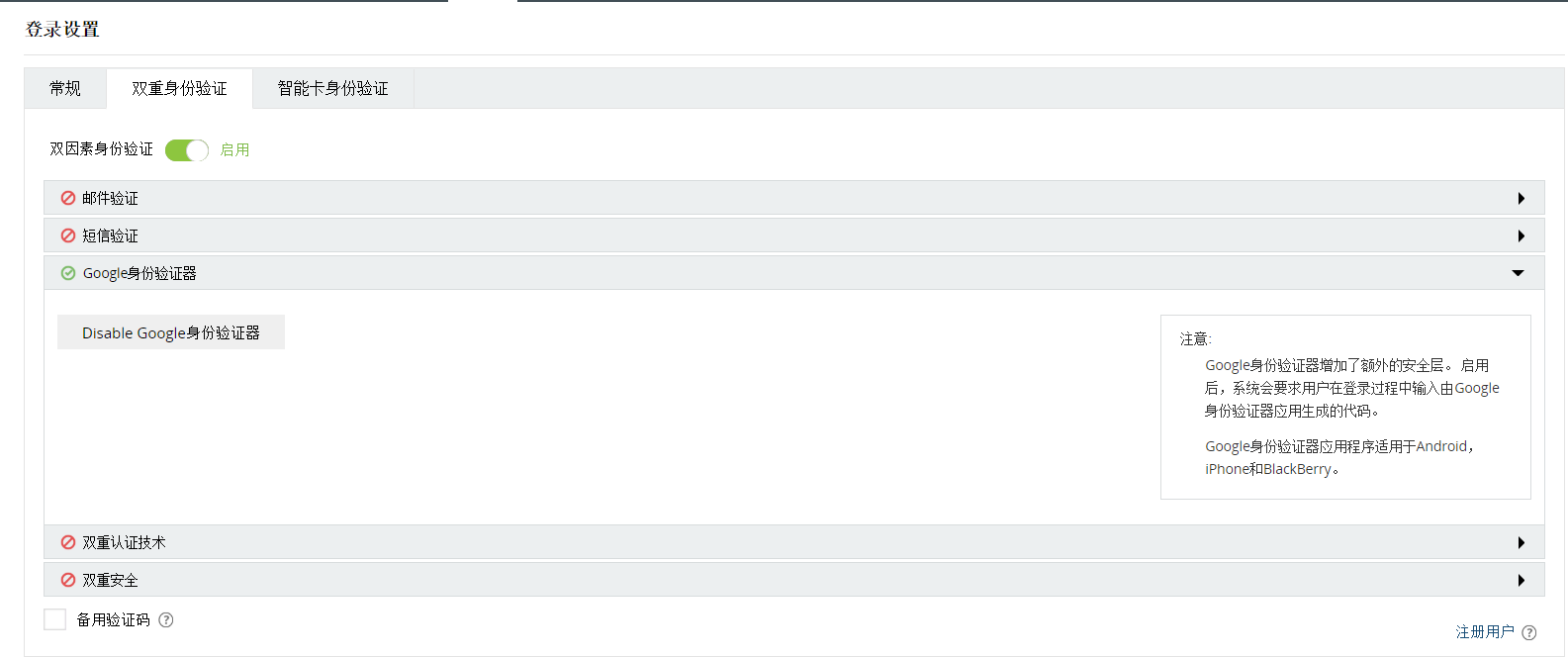 要允许用户使用备份验证码登录,请启用备份验证码。