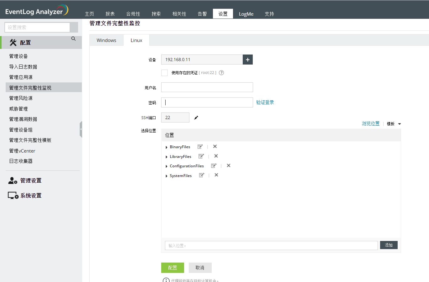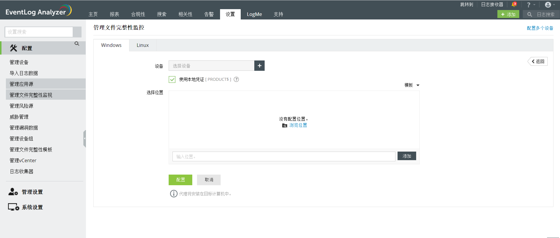 - 点击设置 > 配置 > 管理文件完整性监视。