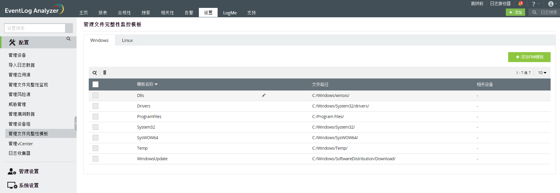 如果需要在多个设备中监视相同的文件或文件夹,则可以创建模板并将其分配给这些设备。要创建FIM模板,请执行以下步骤: