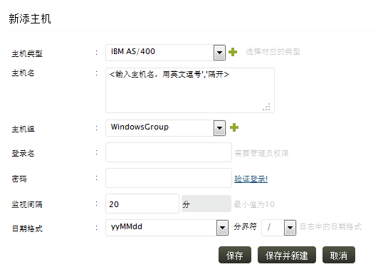 说明:默认的主机类型有Windows、UNIX、IBM AS/400、Cisco Device和Syslog Device。如果要添加新的主机类型,点击“+”图标,然后输入新的类型名称。 |
