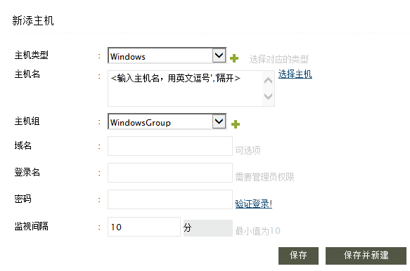 点击保存按钮来添加主机。使用保存并新建按钮来添加更多主机。