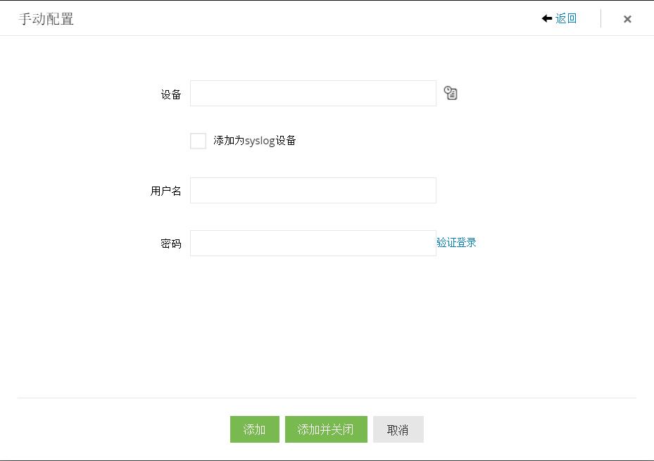 - 输入设备名称或IP地址。您可以通过点击添加为Syslog设备复选框将设备添加为syslog设备。