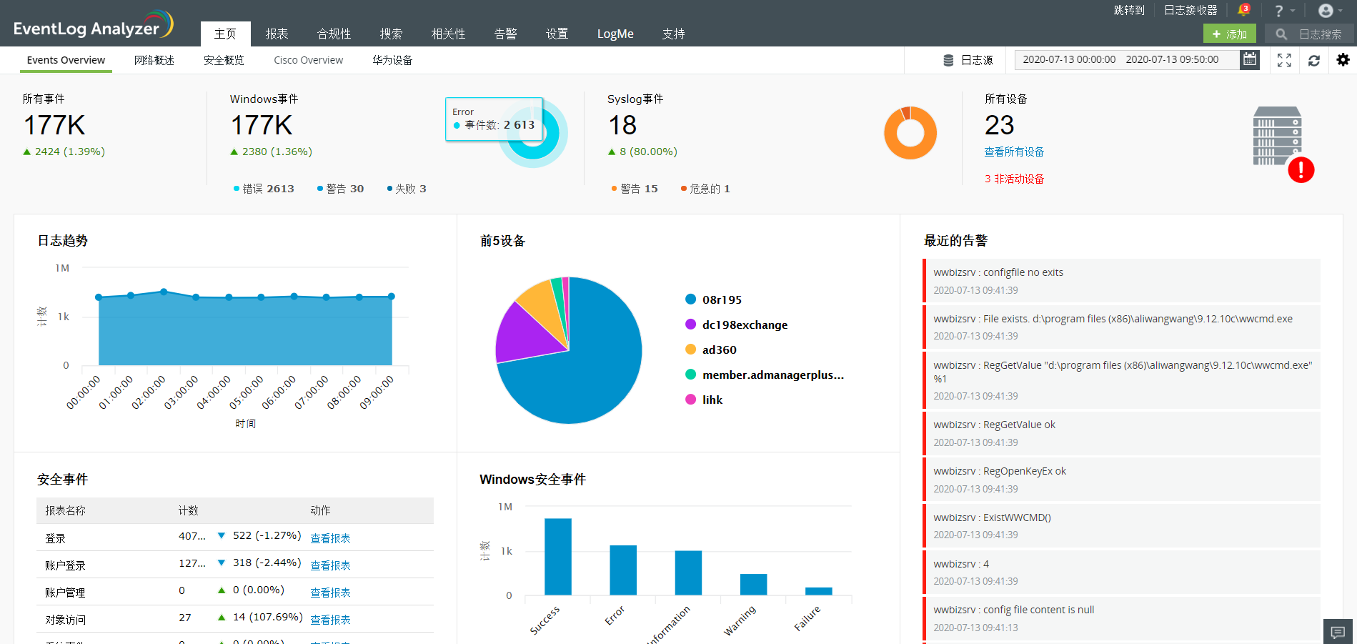 通过支持的Web浏览器可以随时随地访问EventLog Analyzer用户界面。