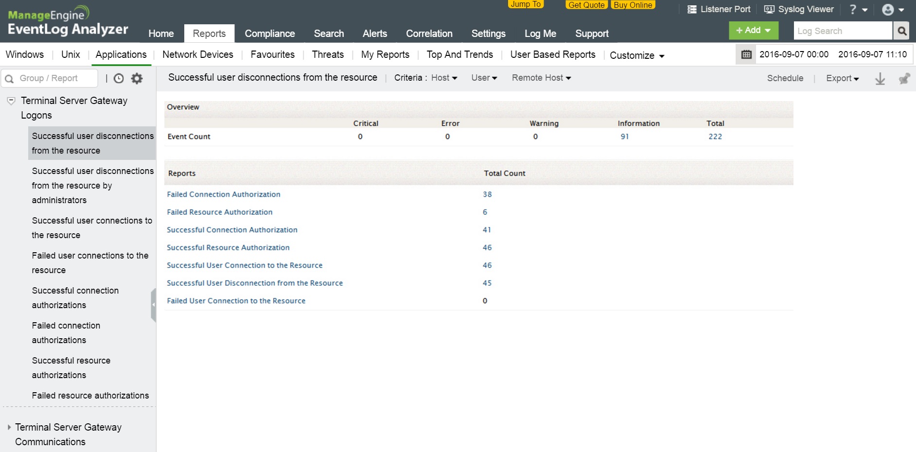 使用EventLog Analyzer进行Windows终端服务日志监控