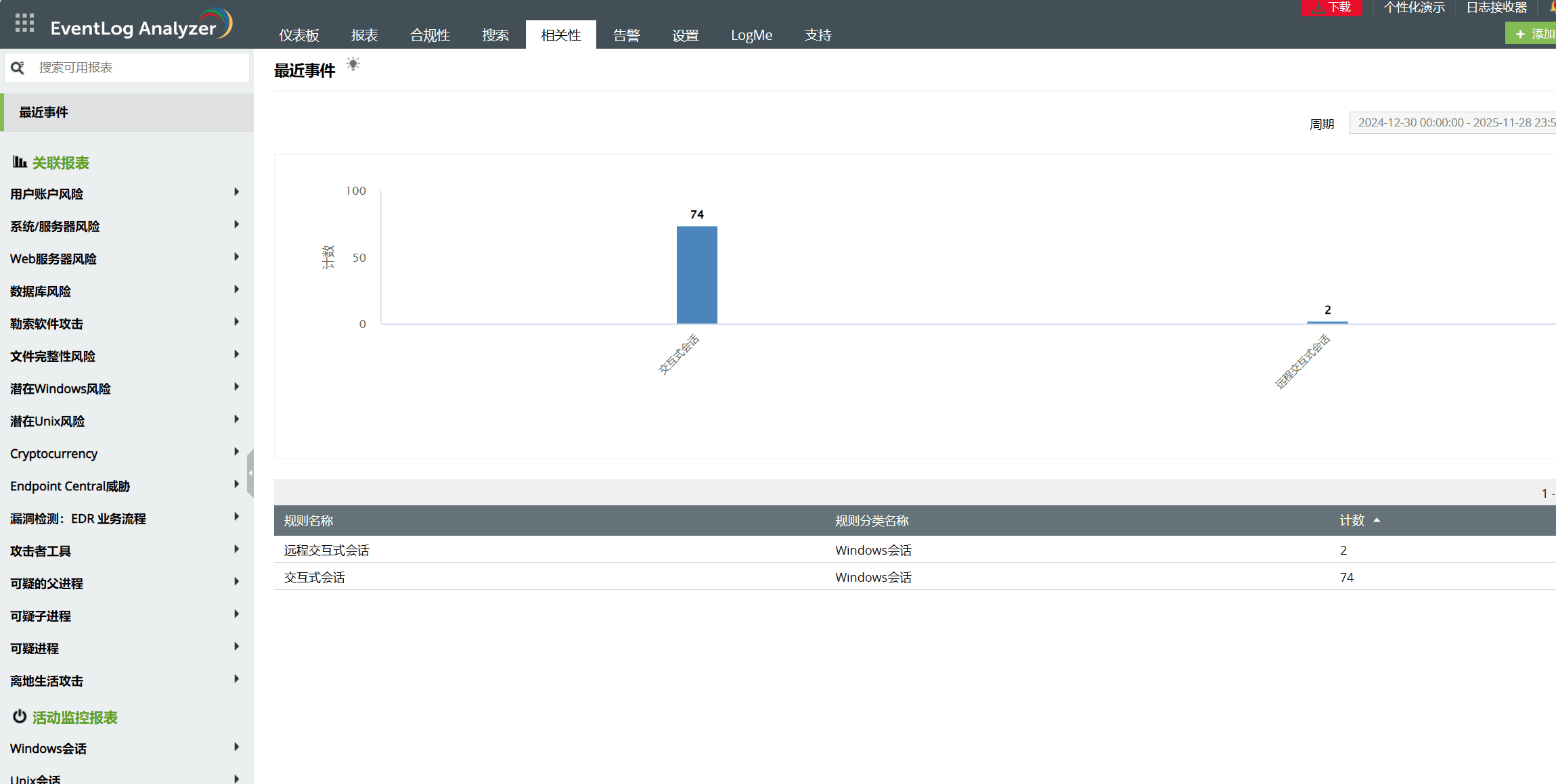 ManageEngine的EventLog Analyzer被公认为网络安全行业中强大的日志管理和分析工具,通过实时事件日志监控、高级威胁分析、合规性管理、自动事件响应等功能保护您的网络。
