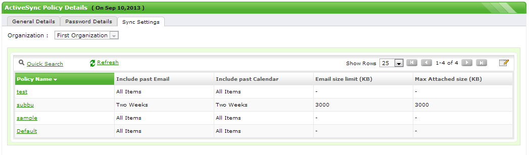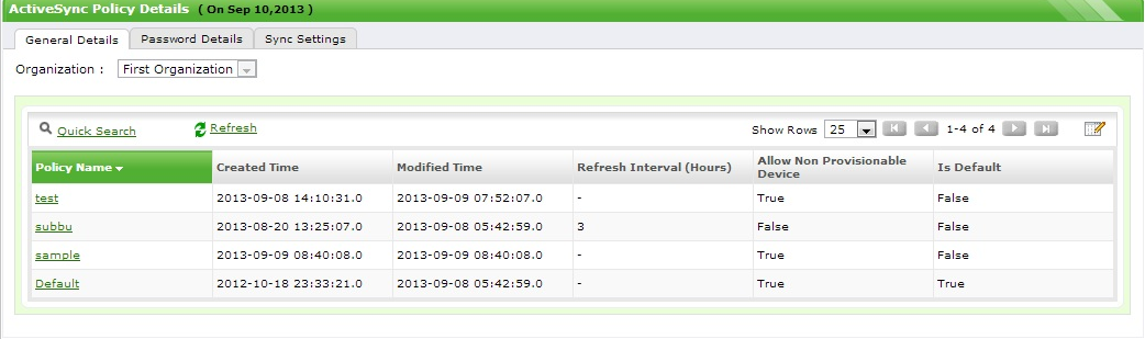 这些报表旨在让您了解Exchange环境中关于ActiveSync的策略。使用这些报表收集ActiveSync策略细节、设备细节和ActiveSync状态信息。或者,您也可以使用这些报表的快速搜索功能来立即获得所需信息。