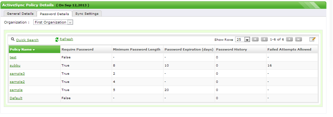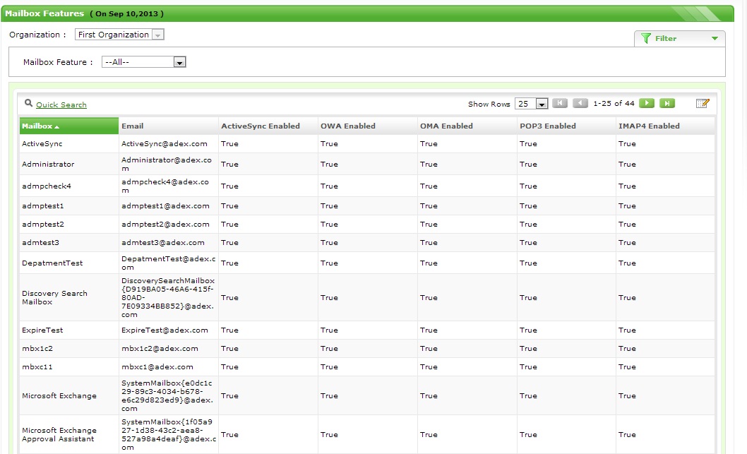 了解在此报表的帮助下,哪个策略适用于哪个单独的邮箱。这份报表提供一般细节、密码细节或与ActiveSync策略相关的详细信息。