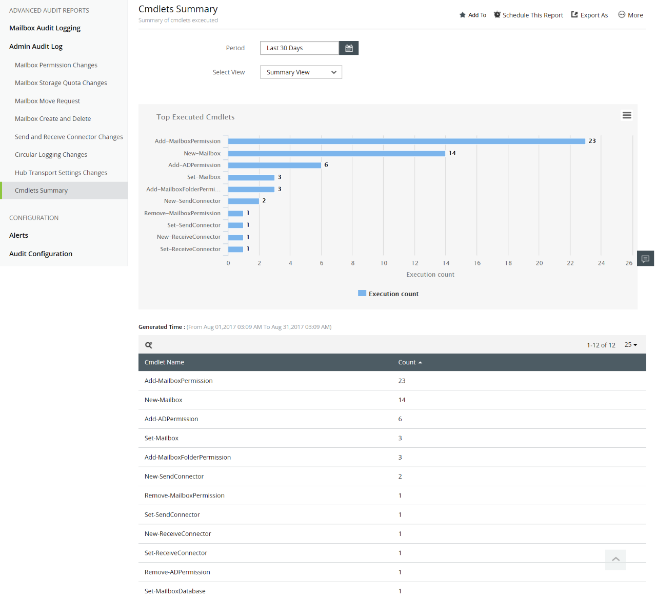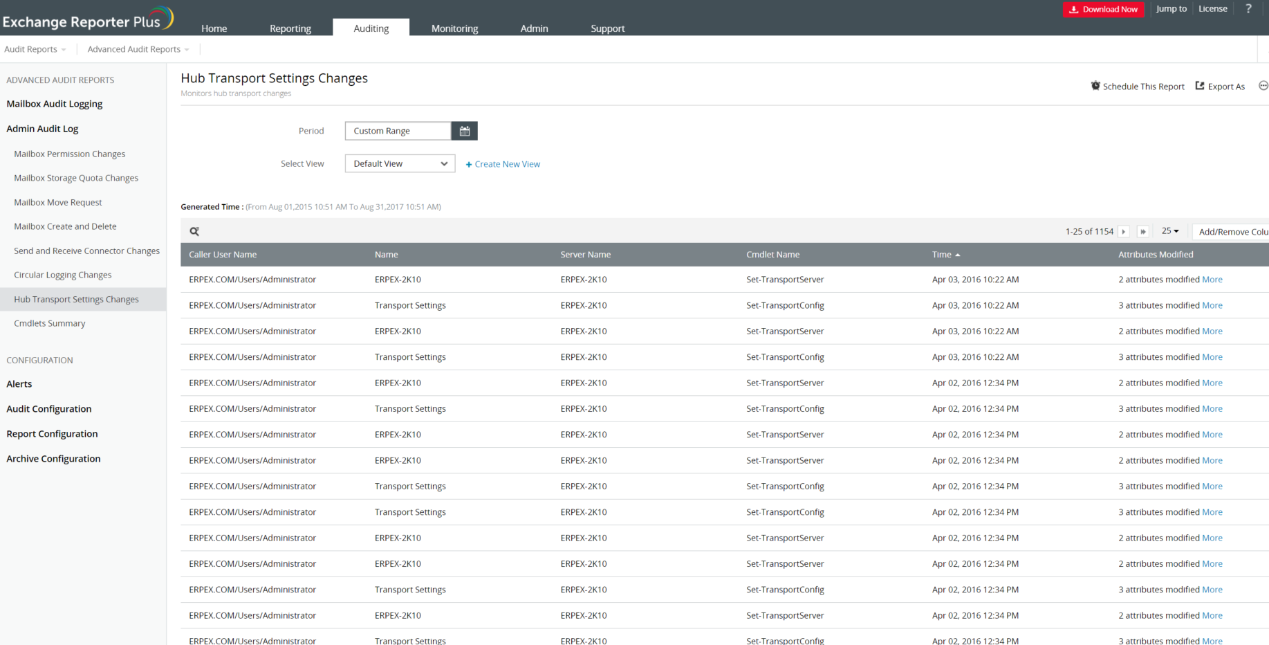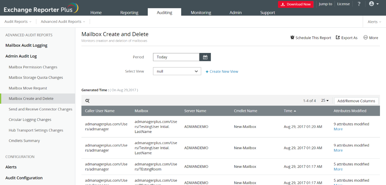 使用Exchange Reporter Plus的管理员审计日志报表审计您的管理员所做的所有更改。