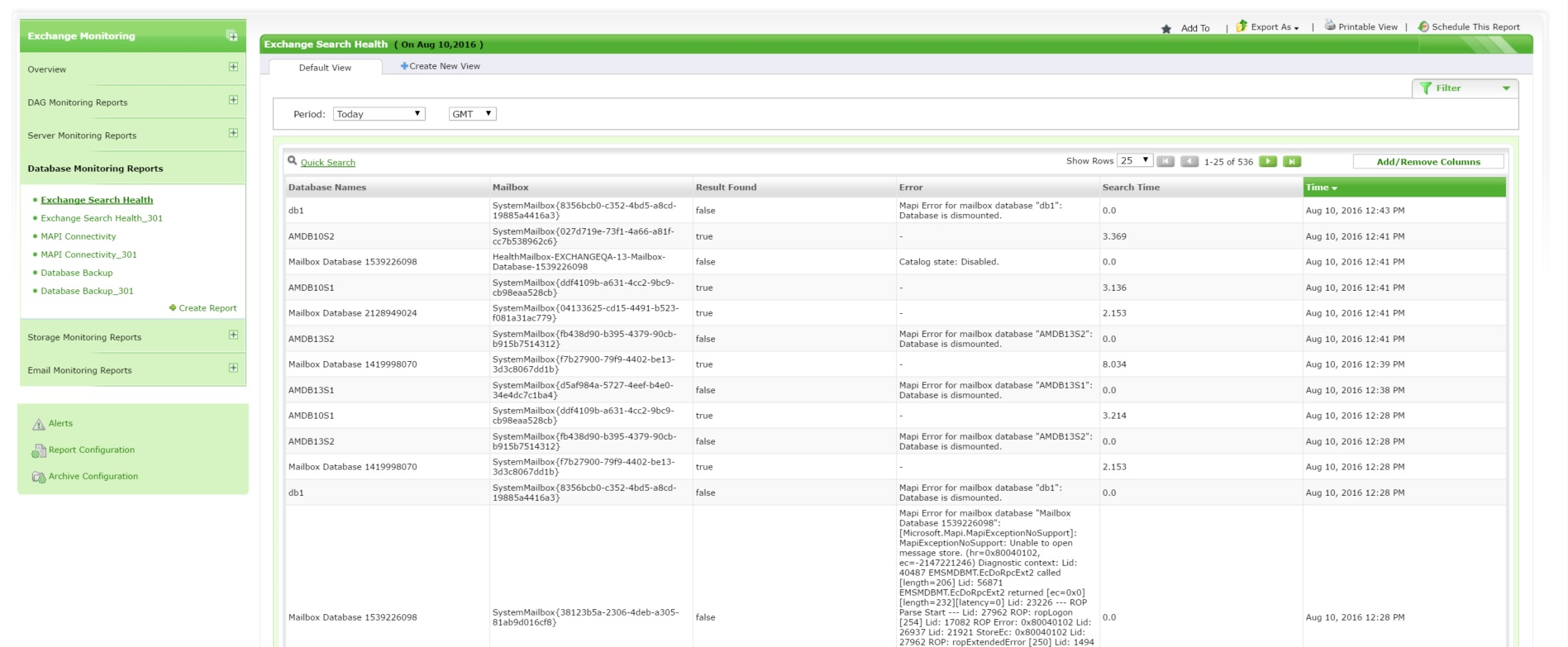 Exchange Reporter Plus通过监控Exchange数据库并为基本Exchange功能提供综合报表平台来满足此需求。