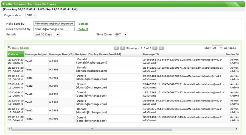 Traffic between two Specific Users - Exchange Reporter Plus | ![]() |