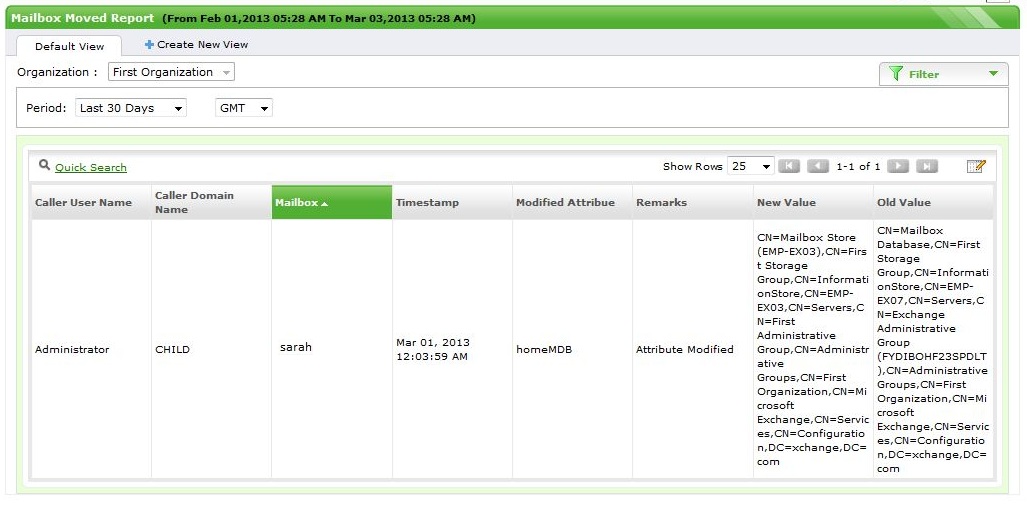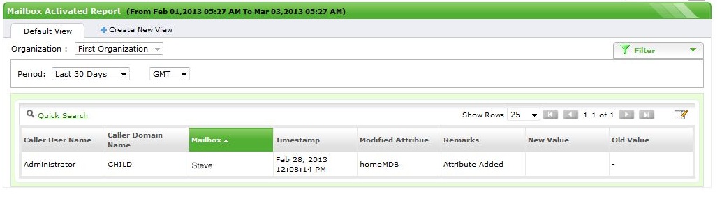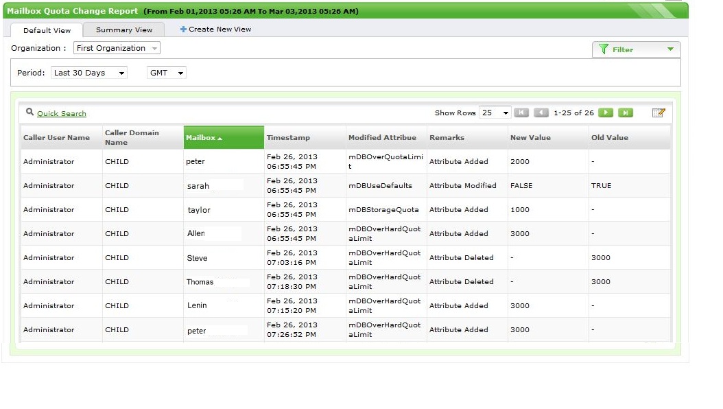 - 此报表列出了最近为新Exchange用户创建的所有邮箱以及邮箱创建用户的详细信息。