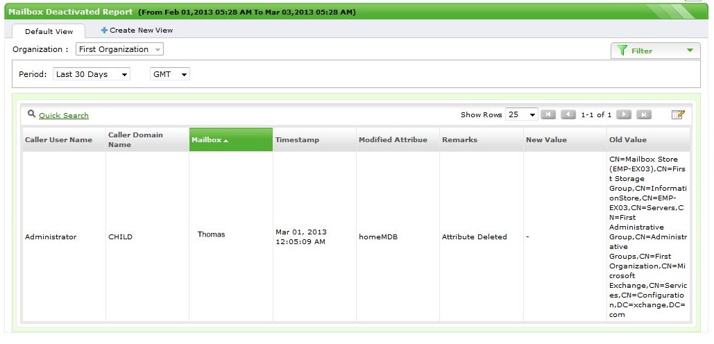- 还将报表有意或无意删除或禁用邮箱以及执行此操作的用户详细信息。