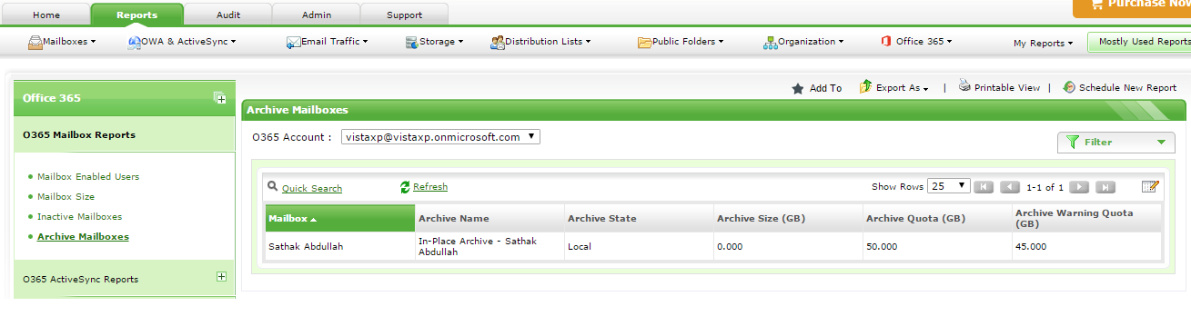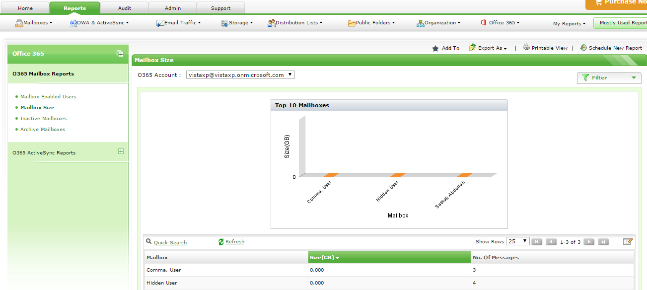 Office 365邮箱大小报表有助于实现高效的容量规划和支持管理决策,因而确保Exchange管理员顺畅操作。Office 365报表对于寻求有关在线邮箱的一般信息的用户会很有用。这些报表让与邮箱大小相关的详情显露出来并有助于有效地管理邮箱,需监测的指标较少。这些报表也可使用CSV、XLS (Excel)、PDF (Adobe Acrobat)或HTML格式导出至任何所需的文件夹。