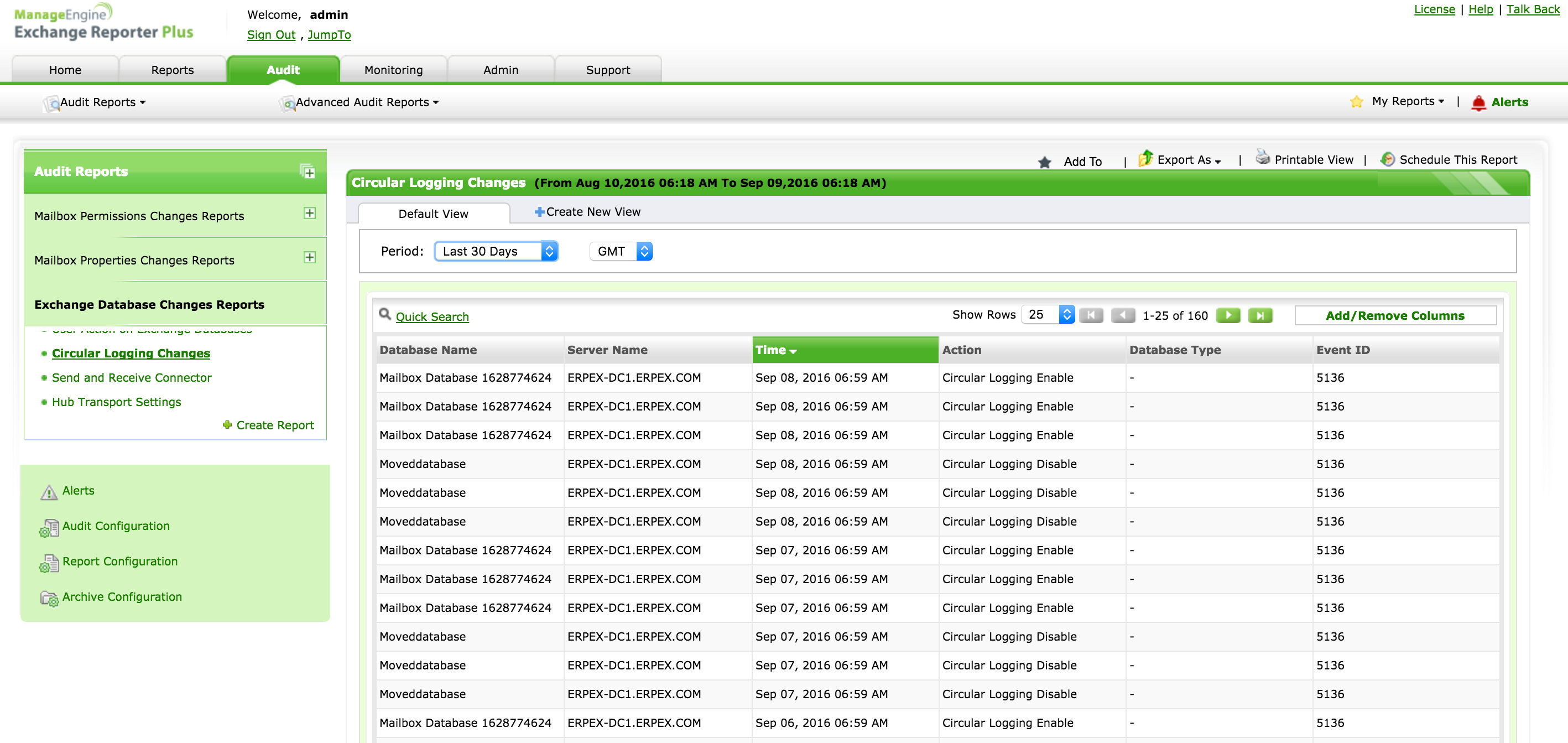 在具有多个管理员的Exchange环境中,跟踪每个管理员对服务器配置所做的更改,或仅仅只是任何更改,都是一项艰巨的任务。如果您拥有Exchange Reporter Plus,提供Exchange Server 2010、2013和2016中所有配置更改的详细报表,那么上述操作将变得不再困难。这些报表使管理员能够轻松解决各种问题,如消息路由问题。对更改进行记录也有助于遵守政策合规要求。此外,管理员可以将这些报表配置为以指定的时间间隔以任何格式(包括PDF、CSV、XLS或HTML)通过电子邮件发送给他们。