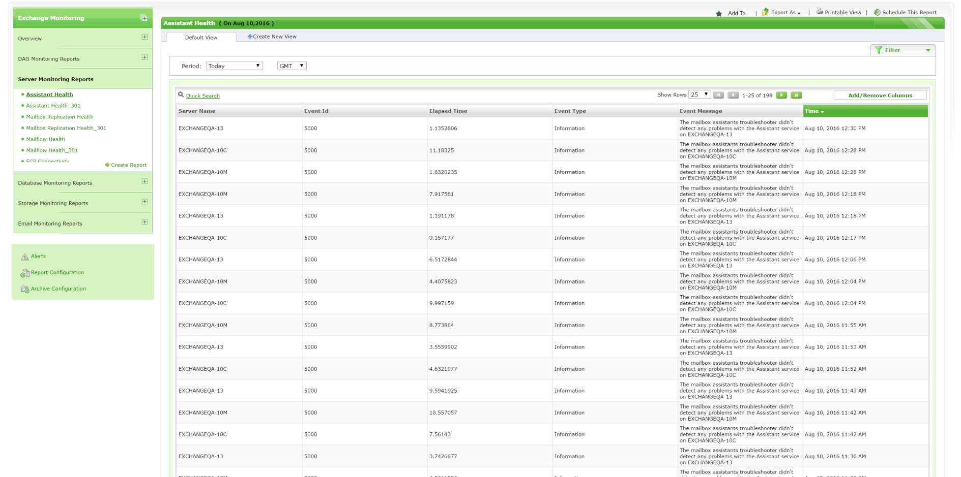 Exchange Assistant Health Reports