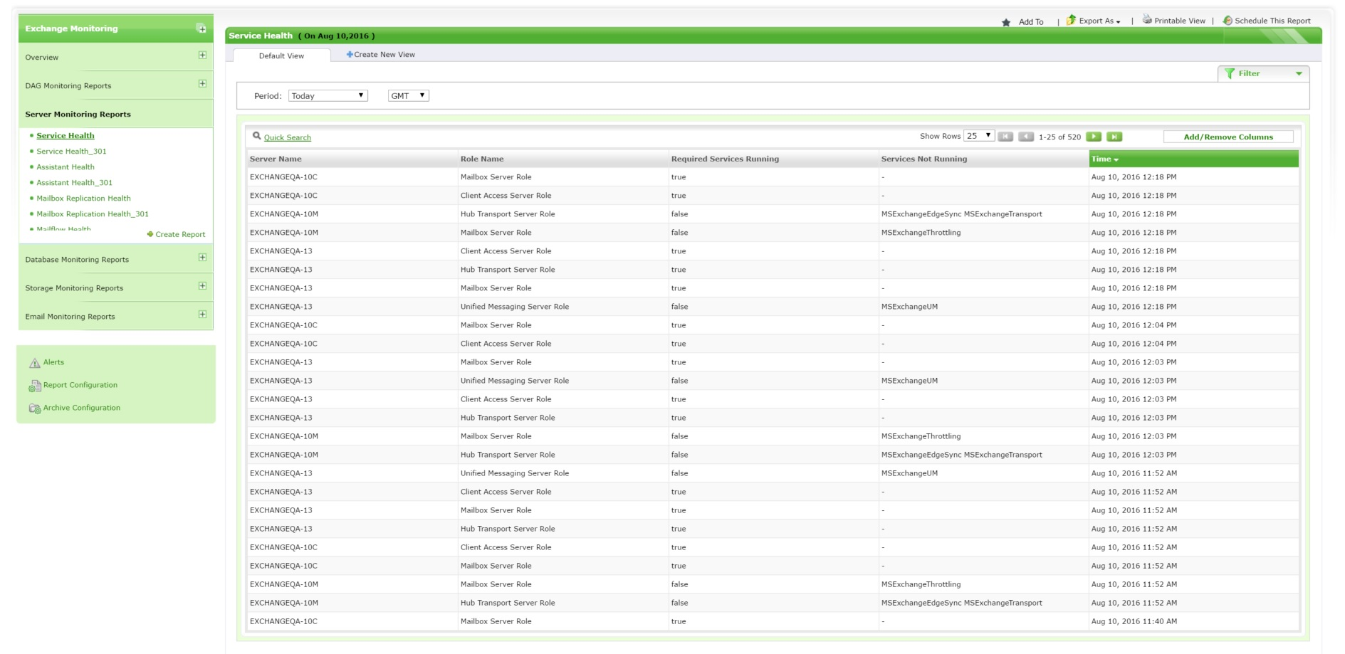 Exchange Service Health Monitoring