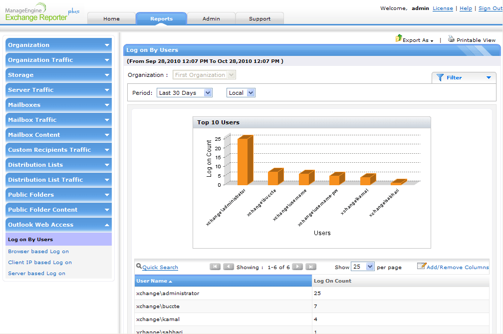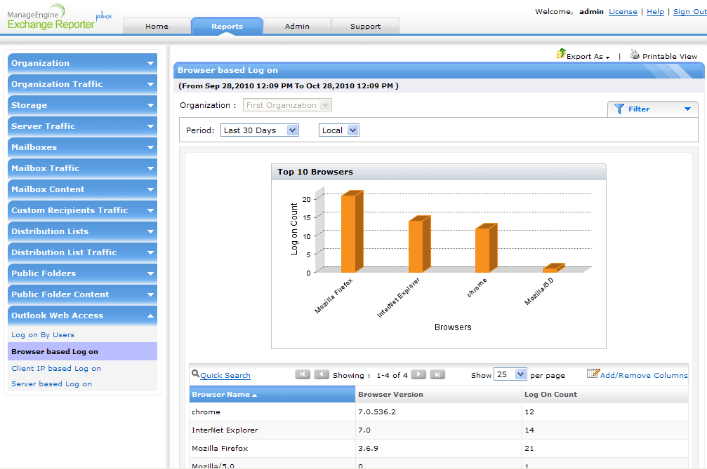 Outlook Web Access-Browser Based Logon Reports - Exchange Reporter Plus | ![]() |