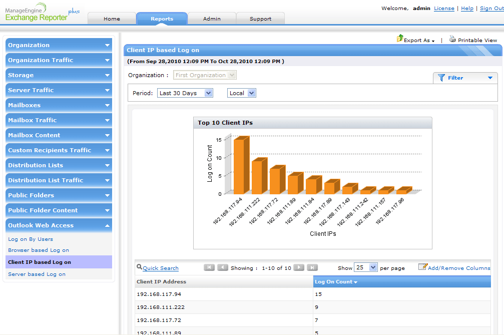 Outlook Web Access-Client IP Based Reports - Exchange Reporter Plus | ![]() |