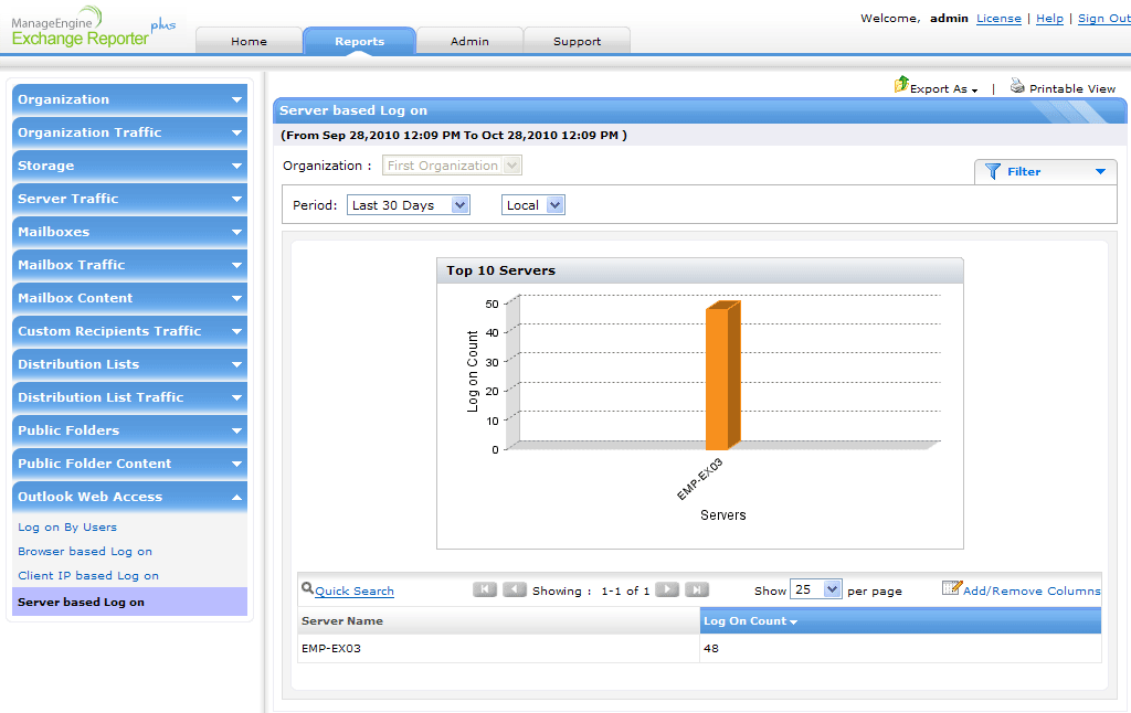 Outlook Web Access-Server Based Logon Reports - Exchange Reporter Plus | ![]() |