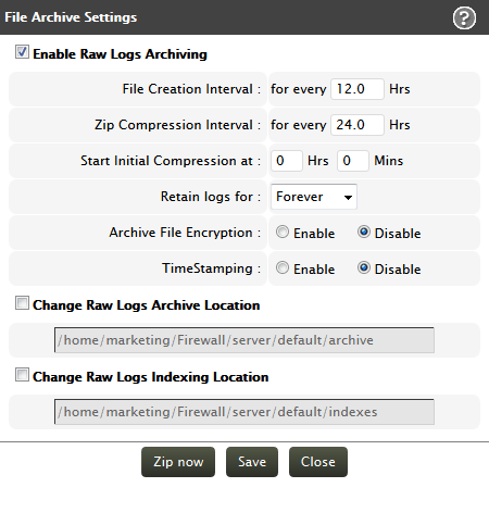 默认的日志归档间隔每24小时创建一个所有接收原始日志的日志归档文件。每隔7天,这些日志归档文件就会被压缩(压缩)一次,以节省硬盘空间。您可以随时配置归档文件的创建和压缩文件的创建,具体取决于您需要归档事件日志的频率。如果需要,甚至可以完全禁用日志归档。