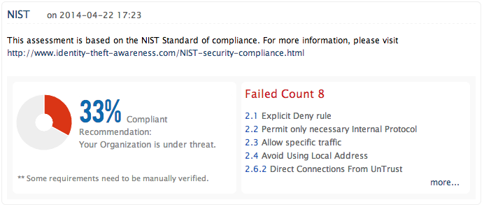 防火墙分析器通过其关于入站和出站网络流量监控、防火墙策略/配置审查、远程防火墙管理访问等的即时报表,帮助满足 NIST 指南要求