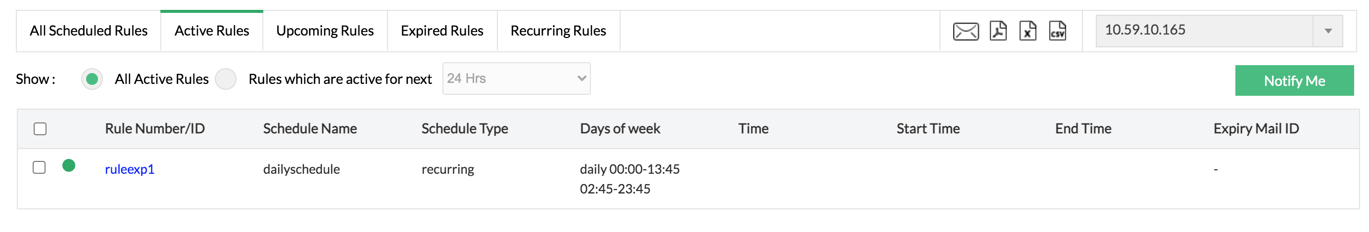 枚举已为其设置计划的所有活动防火墙规则。安全管理员还可以跟踪特定的活动规则并在活动规则过期时收到通知。