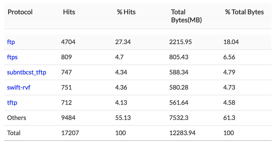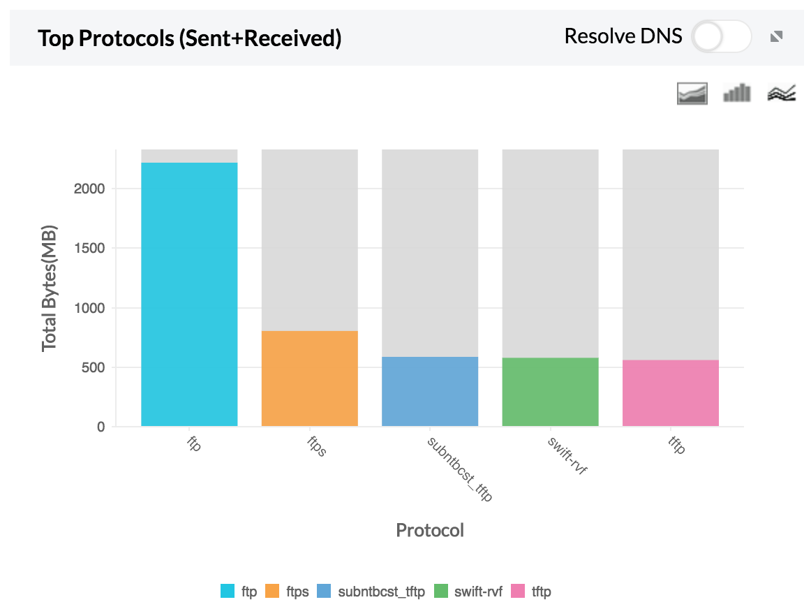 2. 顶级协议 —使用 FTP 发送和接收的顶级协议组流量。