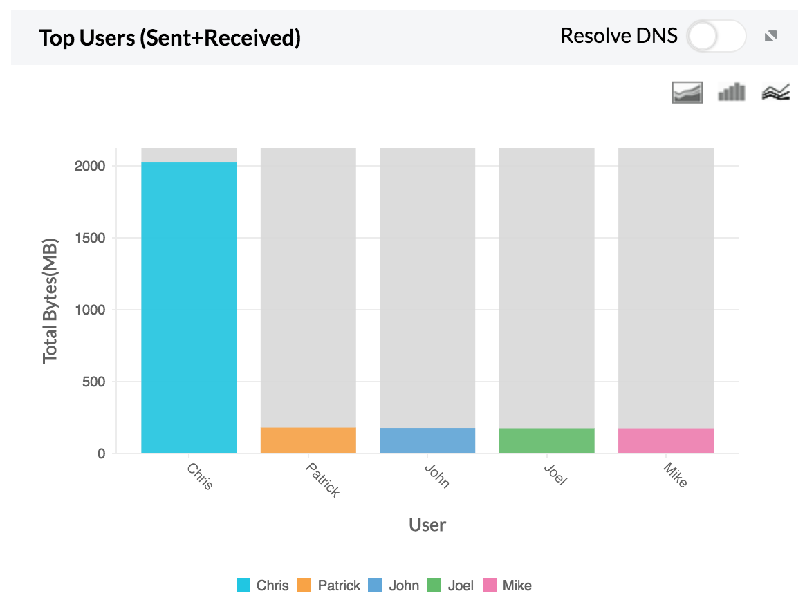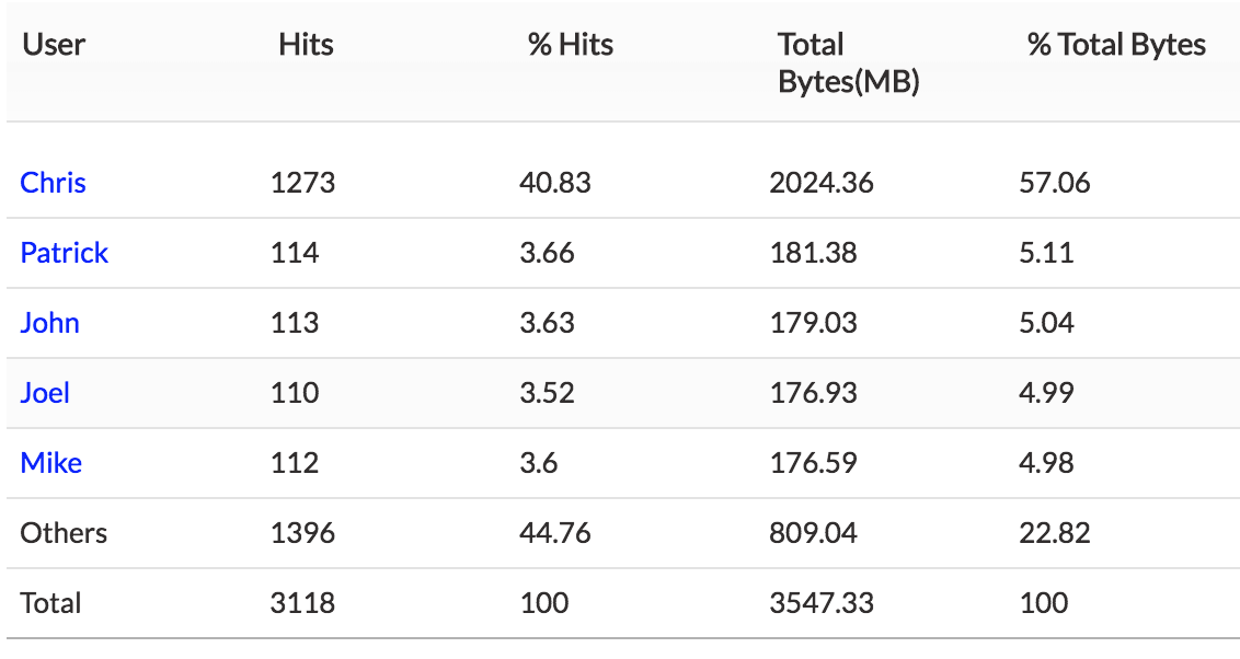 3. 顶级用户 —使用 FTP 发送和接收的顶级用户流量。