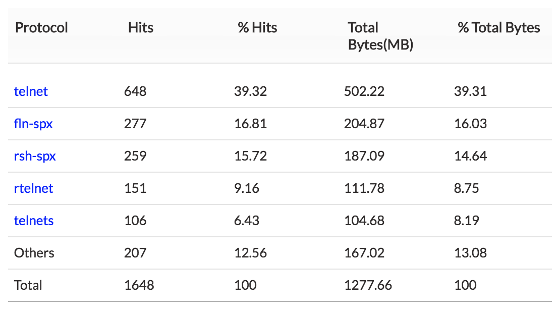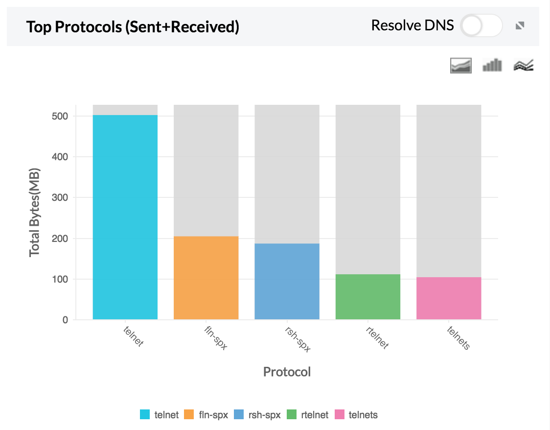 2. 顶级协议 —使用 Telnet 发送和接收的顶级协议组流量。