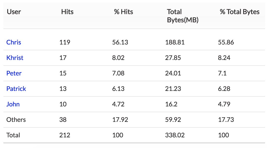 防火墙分析器从防火墙系统日志跟踪 Telnet 使用情况,并提供有关以下内容的详细流量报表: