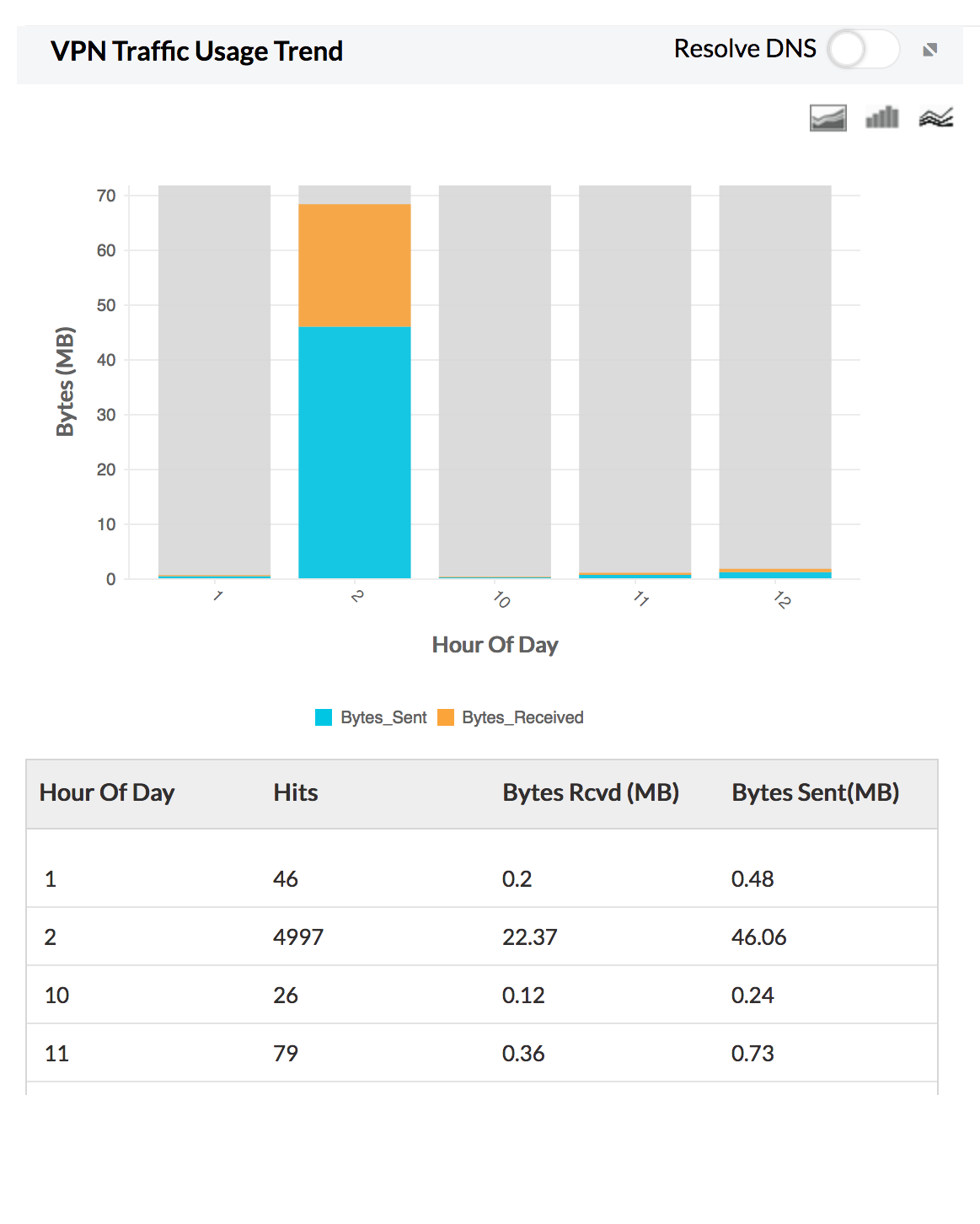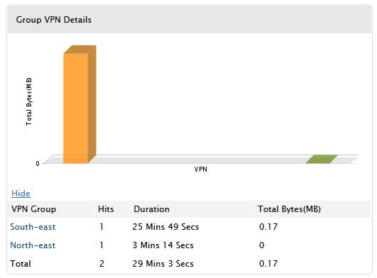 当您的网络中有多个 VPN 时,您会对查看将要搜索 VPN 的流量感兴趣。VPN 使用报表(站点到站点 VPN 监控)正好满足了这一要求。